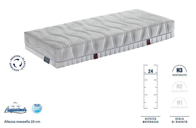La lastra in Aquabreeze (5 cm) flessibile e traspirante, offre un supporto dolce e avvolgente.
